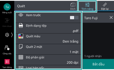 ([Tính năng]) ở phía trên màn hình và thiết đặt các hạng mục.