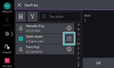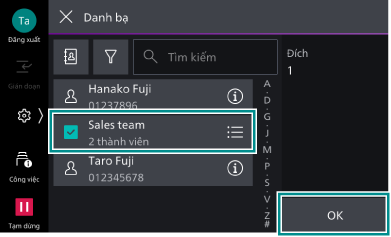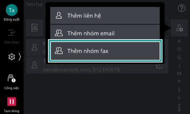 Trong nhóm địa chỉ người nhận, bạn có thể đăng ký địa chỉ người nhận cho [Email] hoặc [Fax]. Bạn cũng có thể loại trừ một số địa chỉ người nhận khỏi nhóm khi gửi.