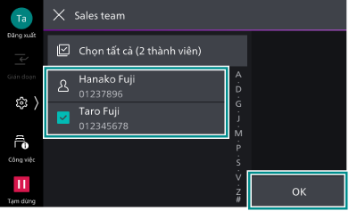 trong nhóm địa chỉ người nhận, chọn địa chỉ người nhận cần gửi từ màn hình được hiển thị và nhấp vào [OK].