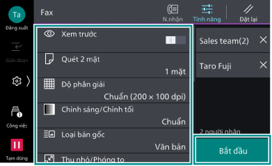 ([Tính năng]) ở phía trên màn hình, thiết đặt các hạng mục khác, sau đó nhấp vào [Bắt đầu].