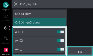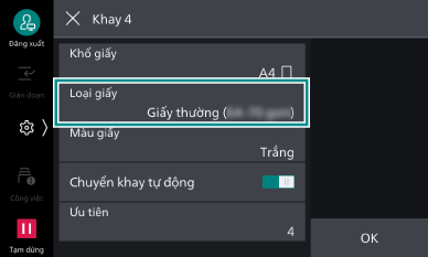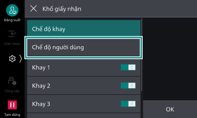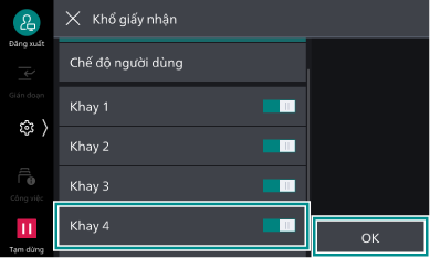 - Chọn [Chế độ khay], bật [Khay 4], sau đó nhấp vào [OK].
