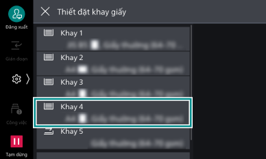 - Nhấp vào [<] để quay trở lại màn hình [Thiết đặt khay giấy].