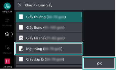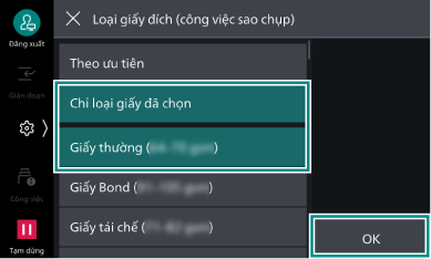 - Nhấp vào [Loại giấy đích (công việc sao chụp)].