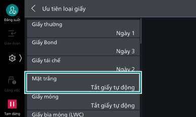 Giấy ra ] > [Thiết đặt khay nâng cao] > [Loại giấy cho khay tự động] thành [Giấy thường].