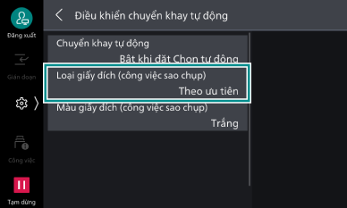 Thiết đặt [Sao chụp] > [Cấp giấy] thành [Chọn tự động].