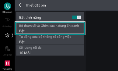- Nhấp vào [Bộ tham số và Ghim của n.dùng ẩn danh].