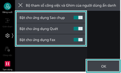 Phần này mô tả quy trình để bật tính năng thao tác nhanh trong chế độ Người quản trị hệ thống và thay đổi các thiết đặt sau liên quan đến lưu lịch sử công việc.