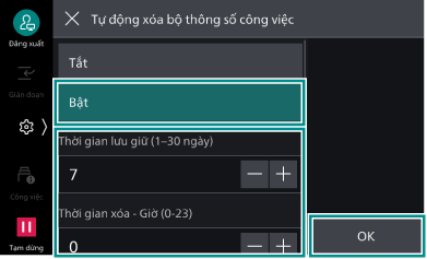 - Nhấp vào [Tự động xóa bộ thông số công việc].