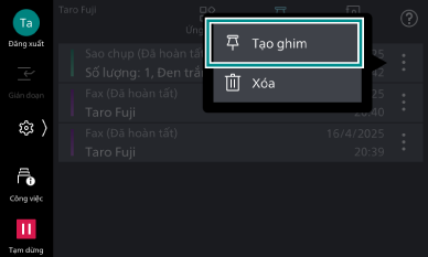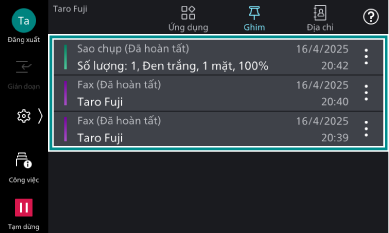 Khi muốn thực hiện lại công việc từ Tính năng thao tác nhanh (Lịch sử hướng dẫn công việc/Lịch sử ghim)