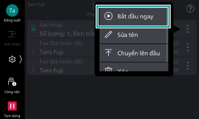 Đối với Fax và Fax qua mạng, nhằm ngăn ngừa việc gửi nhầm, bạn không thể thực hiện thao tác [Bắt đầu ngay].