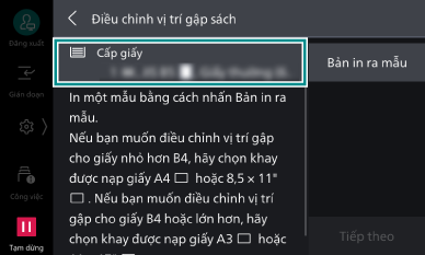- Nhấp vào [Cấp giấy] để chọn loại giấy muốn điều chỉnh.