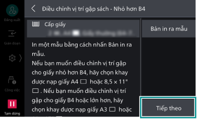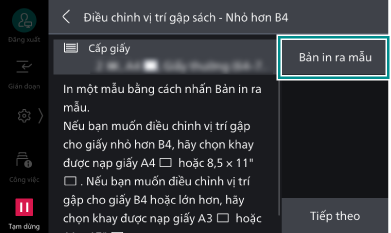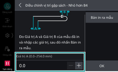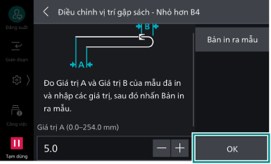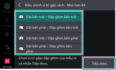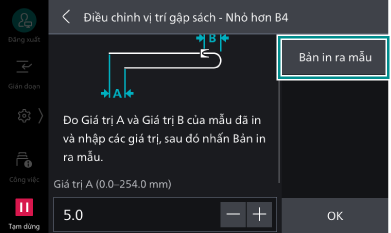Bạn có thể thiết đặt vị trí gập tạo sách cho từng kích thước nhỏ hơn/lớn hơn JIS B4.