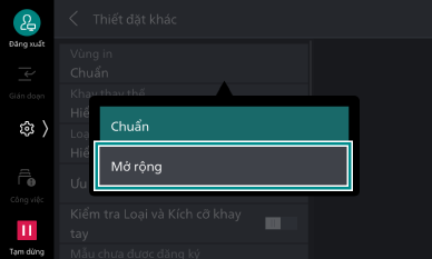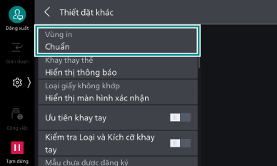 Bằng cách thay đổi thiết đặt vùng in, bạn có thể in vượt quá phần lề (4,1 mm) của vùng in tiêu chuẩn.