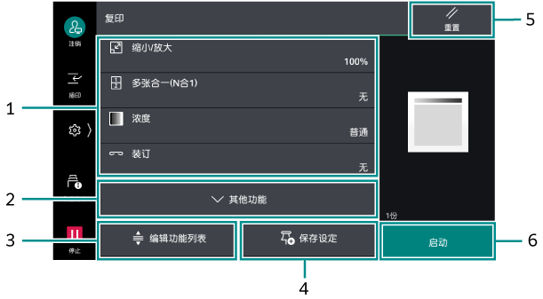 根据经身份验证用户的权限设定和[画面/按键的设定],显示内容可能会有不同。