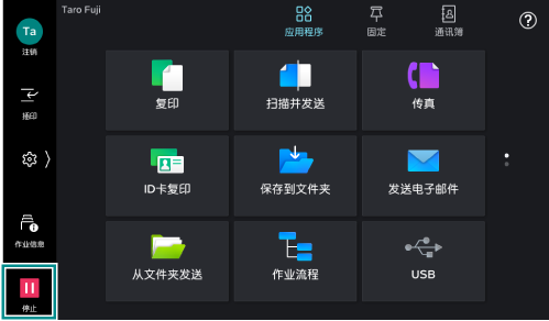 正在扫描原稿或正在执行打印作业时,轻触画面左下方的