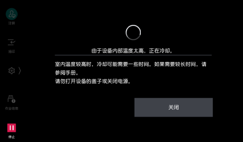 设备内部高温时,自动转换到冷却模式。冷却结束后,自动关闭冷却模式显示画面。