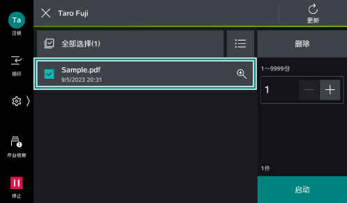 打印在样本打印(只试打印1份)中指定文件的剩余份数。