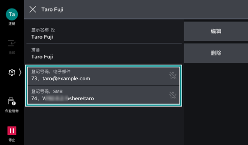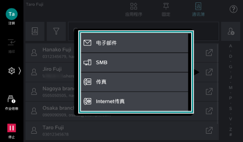 。 - 登记了多个收件人时,轻触发送的收件人类型。