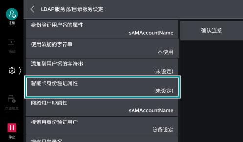 >[设定]>[网络设定]>[远程身份验证服务器/目录服务设定]>[LDAP服务器/目录服务设定]>[智能卡身份验证属性]。