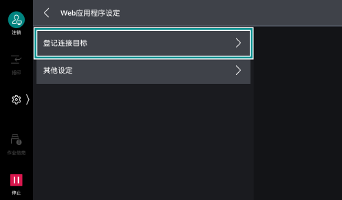 >[设定]>[应用程序设定]>[Web应用程序设定]>[登记连接目标]。